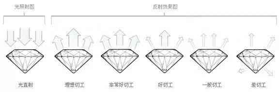 在4C里面,我跟大家最想要强调一点,也是最重要的,就是切工。因为钻石就是利用折射让它看起来更闪,钻石每个面之间的夹角很重要,切碎了就不闪了。