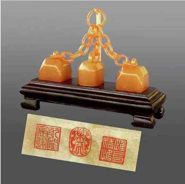 在乾隆皇帝众多印章中, 乾隆田黄三联玺特别珍贵, 现藏于故宫珍宝馆, 可以称之为镇馆之宝。当年, 清朝末代皇帝溥仪在被驱逐出北京故宫的时候, 偷偷带走了许多珍宝, 其中就有这件, 被认为是清代皇帝的传家宝。溥仪把这件国宝藏在棉衣里, 在以后的许多日子里, 溥仪都一直把它带在身边。直至1950年溥仪方将其交出, 经有关机构移交北京故宫博物院收藏。乾隆田黄三联玺, 也叫乾隆田黄三联章, 由三枚印章组成。现藏于故宫博物院, 为国家一级文物。