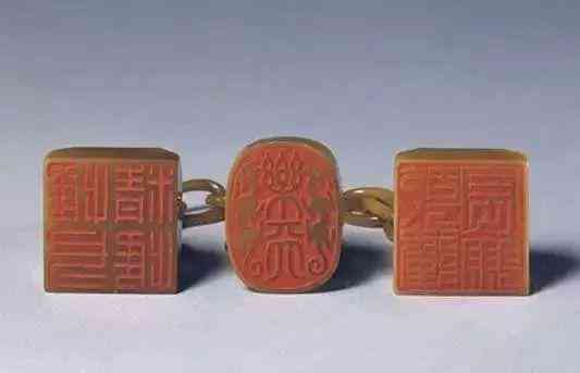 乾隆田黄三链章,也叫乾隆田黄三联玺。这三枚印章由三条石链连成一个整体,成为彼此不可分割的一部分。像这样造型奇特的皇帝印章,极为罕见。