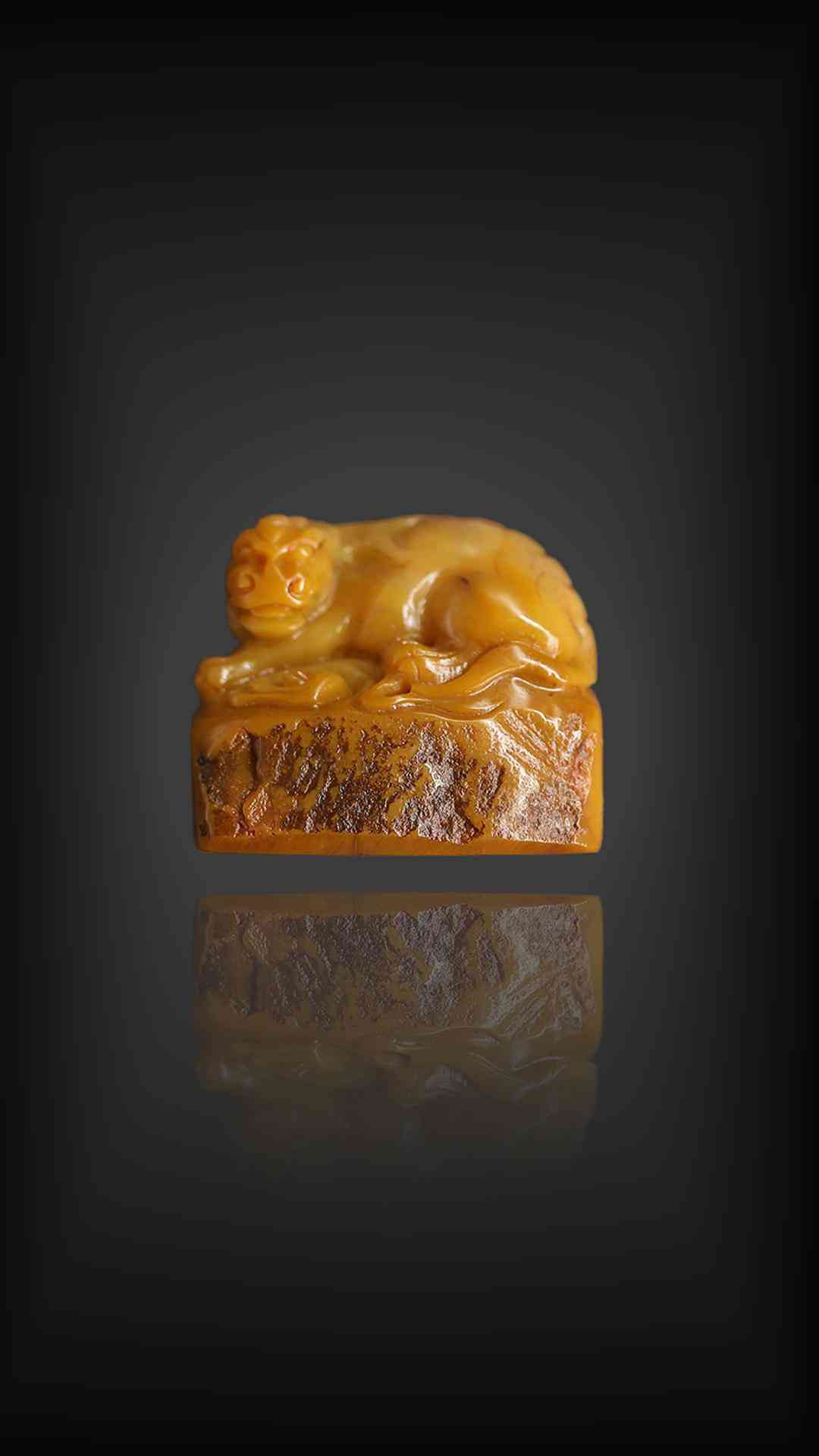 这款田黄三联玺为什么如此珍贵呢? 首先, 田黄石本身就很稀有。田黄石属寿山石类, 它的储藏量很少。田黄石其材质温润凝腻, 在软质雕刻石中居品。明、清各朝均被作为贡品献入皇宫, 被雕刻成御用玺印及艺术摆件。凡经雕镌的艺术品, 都可以当作文物看待, 因为它不能复制, 属没有再生性的艺术品。而且田黄石的黄又和皇帝的“皇”是谐音。黄色给人的冲击力有很大, 更加得到了皇家的喜爱。