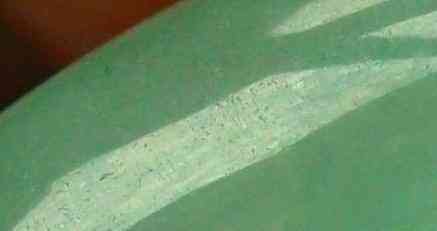 天然翡翠结构清晰,水质越好,结构越不明显。即使抛光后,表面划痕和抛光线也沿同一方向排列。货物经酸洗后常被腐蚀。由于翡翠含有多种不同的溶解度的矿物将蚀刻后产生蜘蛛蚀刻。