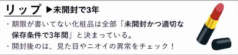 日本的医药品医疗器械法规定只有生产后3年内会变质的产品才必须标明保质期”。如果没有标明,就说明这款产品在未开封条件下具有至少3年的保质期,甚至过了3年期限也能继续使用,但要记住!!前提是未开封。