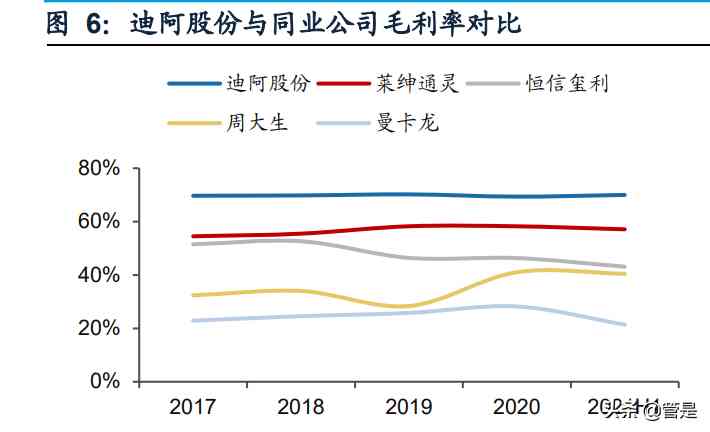 公司核心主营为珠宝首饰业务,可比公司选取周大生、老凤祥、曼卡龙、周大 福和中国黄金。我们认为DR可享有比同行业平均水平更高的估值溢价,原因主要有 以下几点: