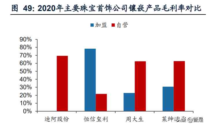 截至2021年上半年,公司线下门店375家,全部以直营模式运营,从全行业来 看都是比较另类的。大多数珠宝公司采取直营+加盟的运营模式,直营店建立品牌形 象,加盟店充分发挥经销商的地域优势,利用社会资源加速品牌扩张。直营门店的 优势显而易见,掌控从批发到零售的全产业链利润,更容易获得商品和用户的信息 做数字化运营,也更容易建立和维护品牌形象。但劣势也很突出,珠宝是重资金、 高库存、慢周转的品类,无论黄金还是钻石,原料都是最大的成本项,同时周转速 度较慢,尤其是钻石。全直营对于DR来说尤其重要。“男士一生仅能定制一枚”的 购买规则,需要门店销售人员严格执行,才能更好的守护品牌理念,全直营从模式 上就杜绝了加盟商潜在的违规风险。