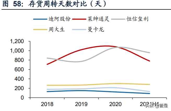 经营性净现金流超过净利润,存货周转率行业领先。“男士一生仅能定制一枚 DR”的购买规则,将定制融入品牌理念。门店存货以样品为主,用户选中款式后预 付30%定金,10-15天的定制周期,拿到成品后付剩余70%尾款。这一模式下,公司 解决了钻石行业重资产、慢周转的痛点,现金流创造能力和存货周转效率领先行业。 公司2020年经营性净现金流入8.9亿元(当期归母净利润的1.6倍),2021年前三季 度经营性净现金流入11.4亿元(当期归母净利润的1.15倍)。2020年存货周转天数 122天,同行普遍在300-400天水平(且大多数珠宝公司以黄金为主,而黄金周转远 快于钻石镶嵌)。