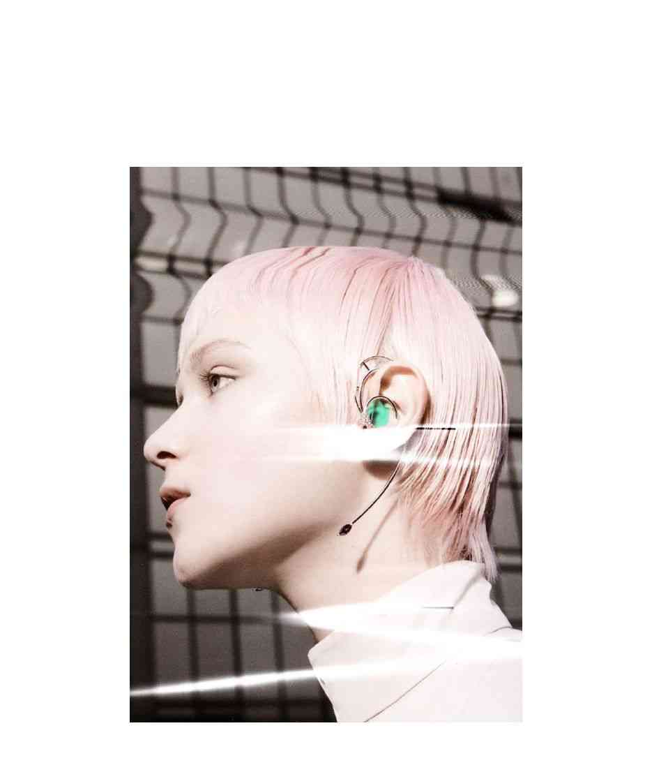 除了下半框眼镜,这款耳挂也极具未来感,古怪又充满个性。