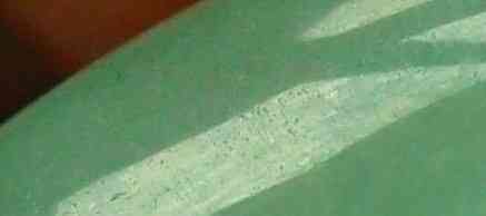 天然翡翠结构清晰,水质越好,结构越不明显。即使抛光后,表面划痕和抛光线也沿同一方向排列。货物经酸洗后常被腐蚀。由于翡翠含有多种不同的溶解度的矿物将蚀刻后产生蜘蛛蚀刻。