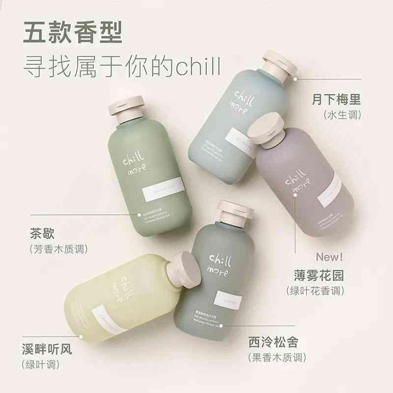 Chillmore泠水以个人护理为主,涵盖沐浴露、护手霜、身体乳、磨砂膏等一系列身体护理产品,不管是产品形态还是香氛,都力求打造“舒适”、“轻松”的品牌标签,在一众洗护品牌中独树一帜。