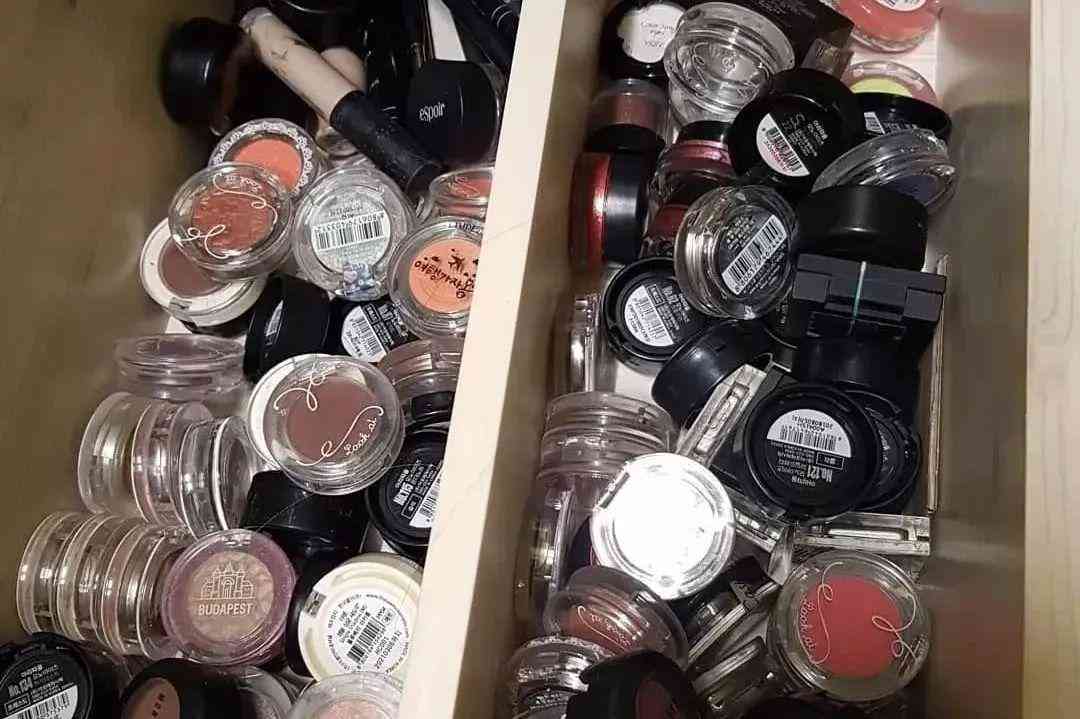 像腮红、眼影、高光等产品的包装大多大同小异,所以可以集中存放,按照不同分类放在抽屉的各层,清晰明了。