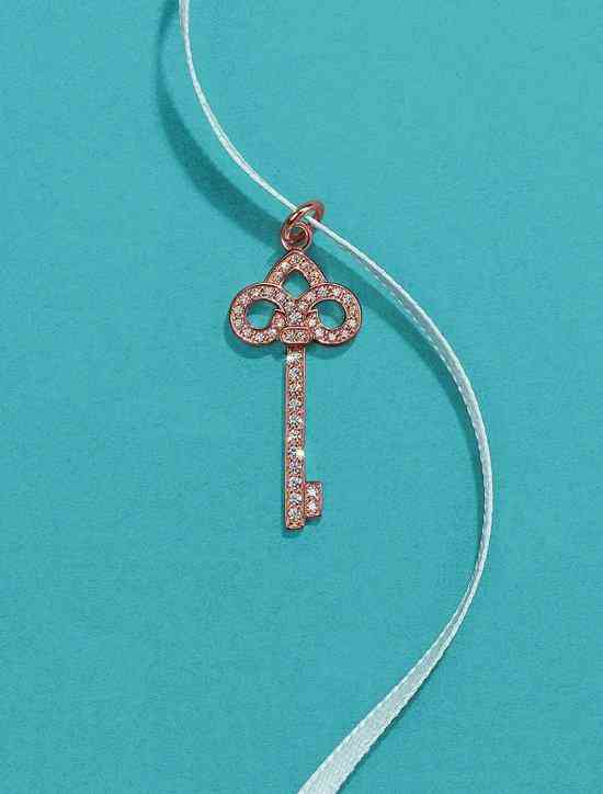 Tiffany & Co. 蒂芙尼Keys系列18K玫瑰金镶钻鸢尾花形钥匙吊坠