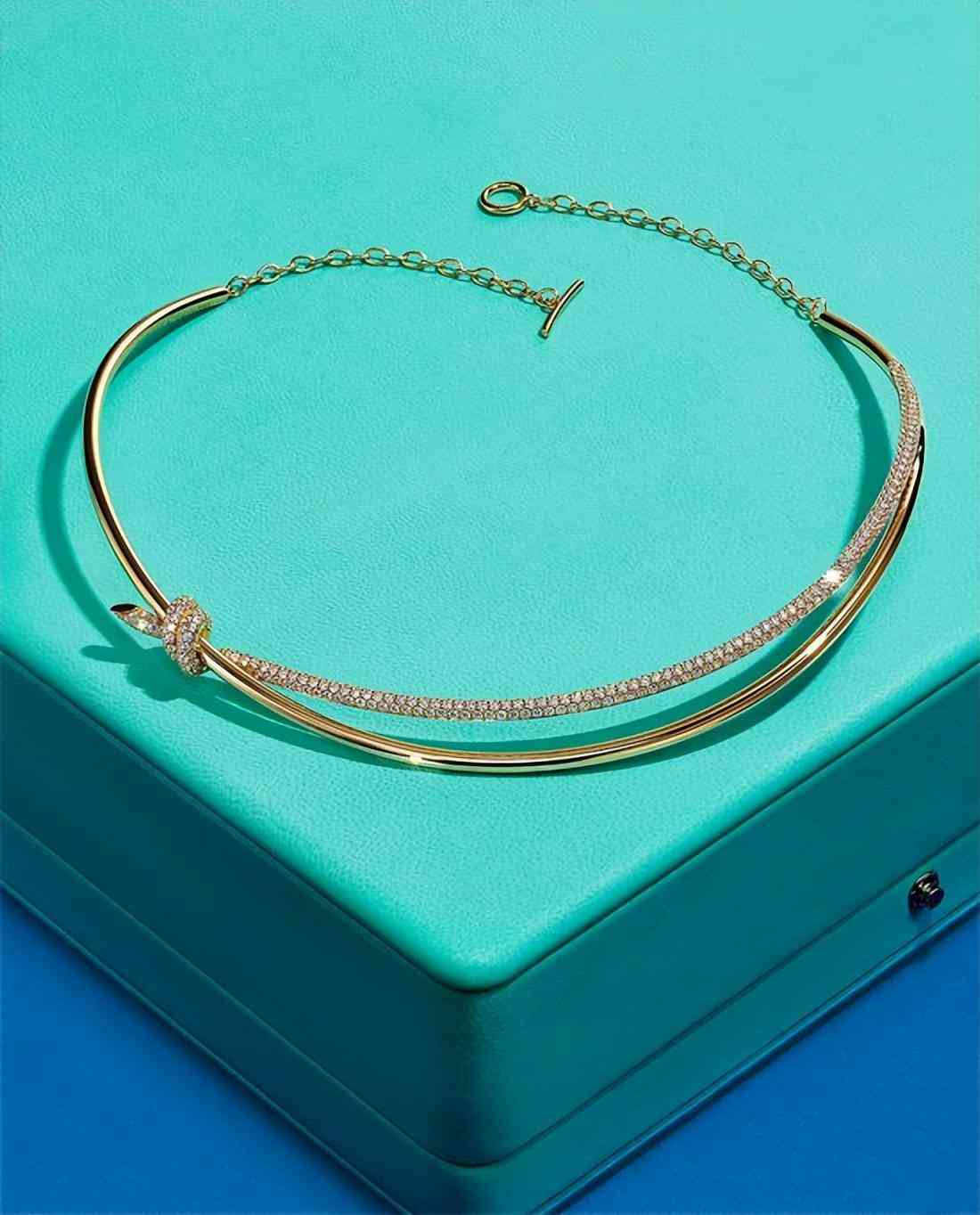 Tiffany & Co. 蒂芙尼Knot系列18K黄金镶钻双行项链