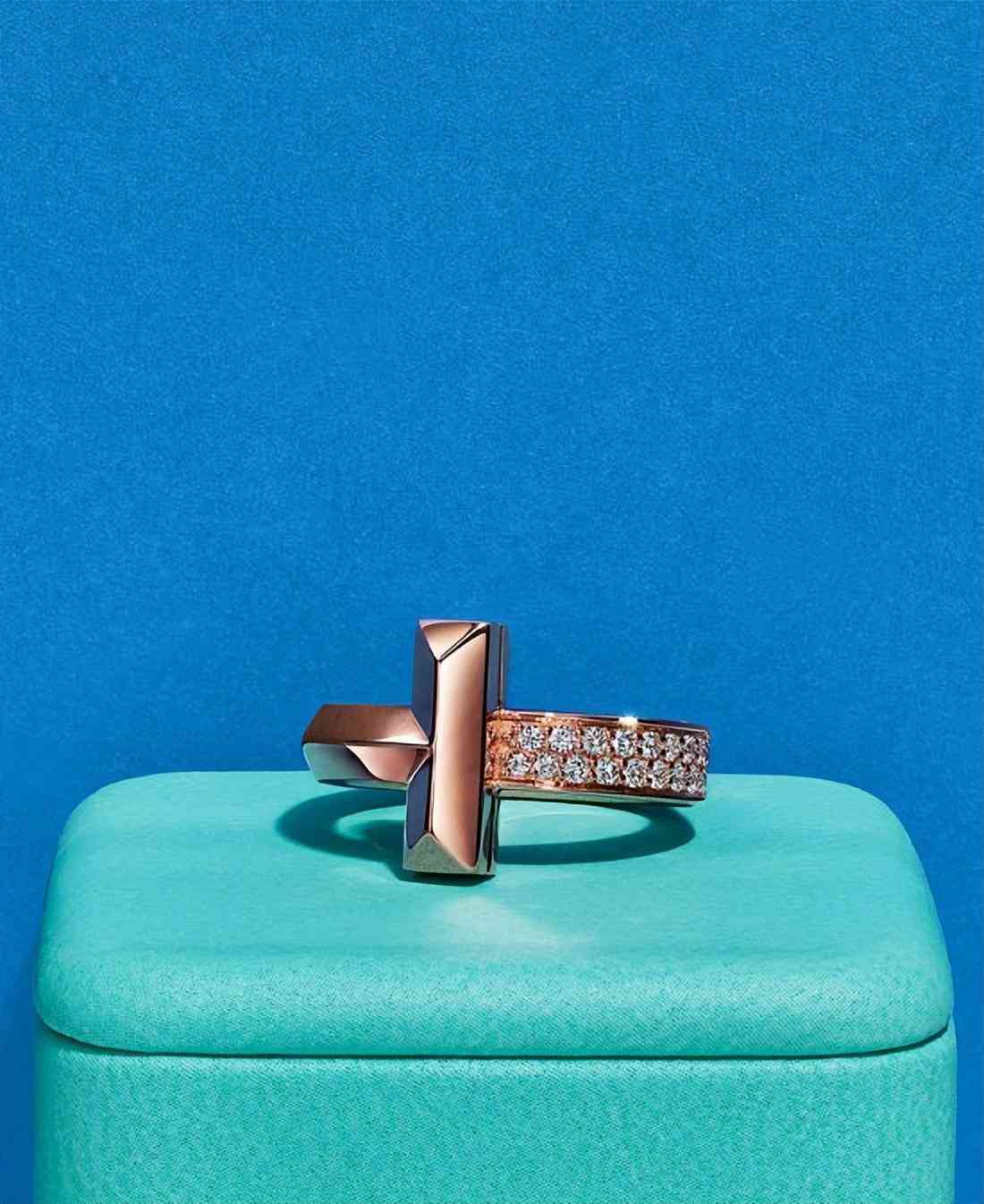 Tiffany & Co. 蒂芙尼T1系列18K玫瑰金镶钻宽式戒指