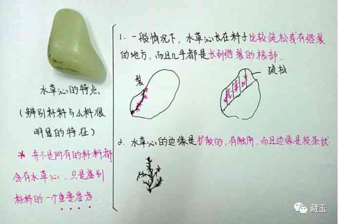 (一)一般情况下,水草沁长在料子比较疏松或有绺裂的地方,而且几乎都是长到绺裂的根部。
