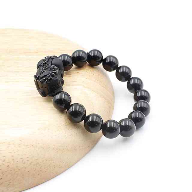 珍石轩天然水晶黑曜石貔貅手链