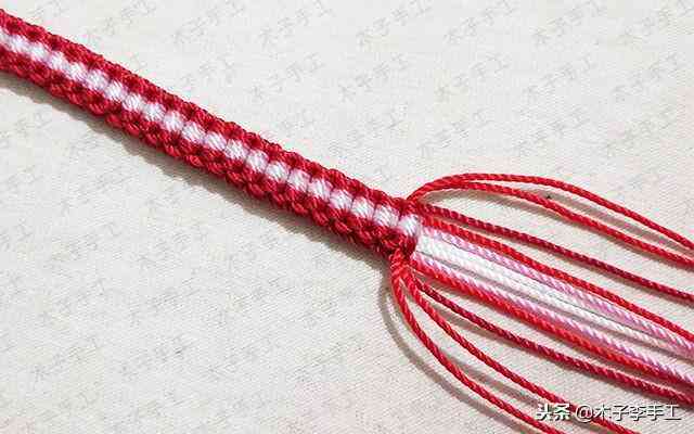 15、所有的线分成2组做一个纽扣结收尾,如果觉得做出来的结太大,可以先剪掉中间几根线再做纽扣结哦