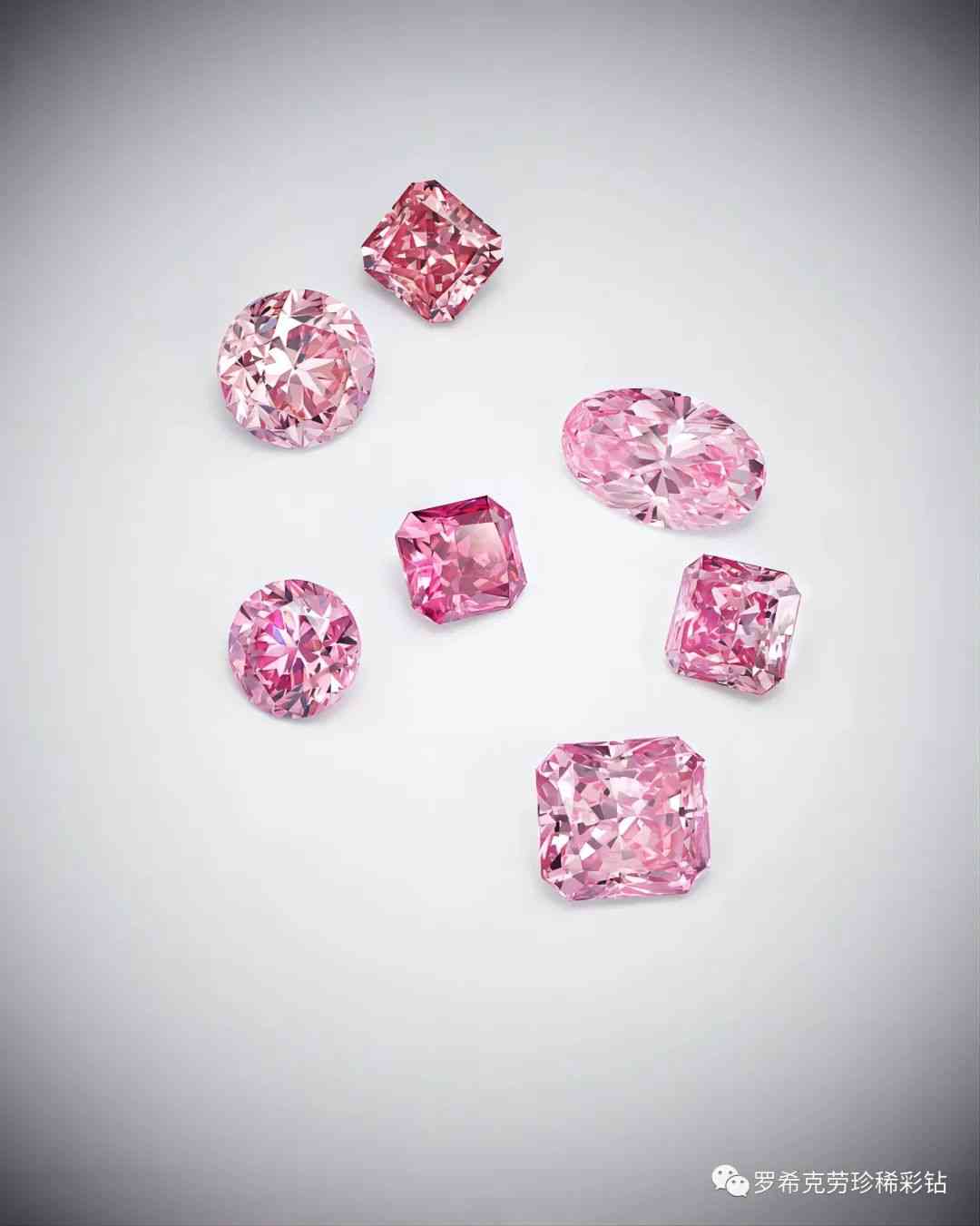 粉红带紫PP-(Purlish Pink):9PP,8PP,7PP,6PP,5PP,4PP,3PP,2PP,1PP粉红色P-(Pink):9P,8P,7P,6P,5P,4P,3P,2P,1P粉红玫瑰PR-(Pink Rose):9PR,8PR,7PR,6PR,5PR,4PR,3PR,2PR,1PRRosy Clouds Diomonds 这两颗钻石分别是4p、5p的高等级高品质的粉钻。当然,不管一颗阿盖尔粉钻在阿盖尔证书里被评为什么颜色,它最终属于什么等级颜色、它最终价值取决于它在GIA证书中被评为什么颜色。因为GIA才是全球钻石评价的标准,但一颗阿盖尔粉钻的阿盖尔证书证明了这颗阿盖尔粉钻的高贵血统。