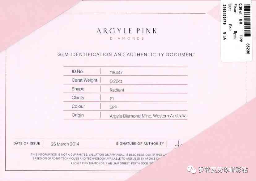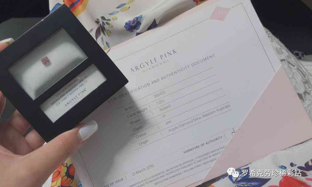阿盖尔证书货虽然够不上阿盖尔年度招标,但品质仍然上佳的阿盖尔粉钻都带有阿盖尔证书,但没有特殊包装。