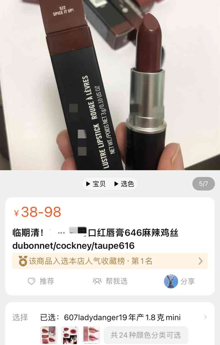 △某平台上销售的大牌临期口红,该品牌原价一支在200元左右。