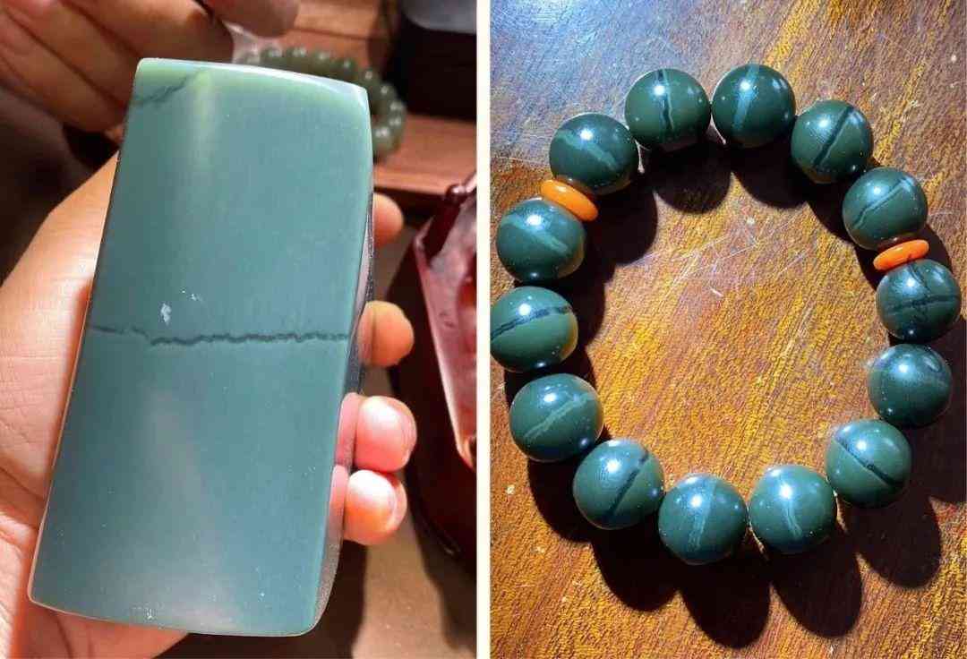 下图青海黑青蓝调带猫眼线 产出很少属于几率事件 肉细 线直且居中为上品
