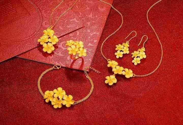 1、传统三金按照中国的传统习俗来说,结婚一般都是要准备“三金”的,传统结婚“三金”是指戒指、项链、耳环,或者戒指、项链、手镯。地域不同,婚嫁习俗自然也是存在差异的,有的地方结婚不仅准备三金,还会有五金哦!五金是指:金项链、金戒指、金耳环、金手镯、金吊坠。