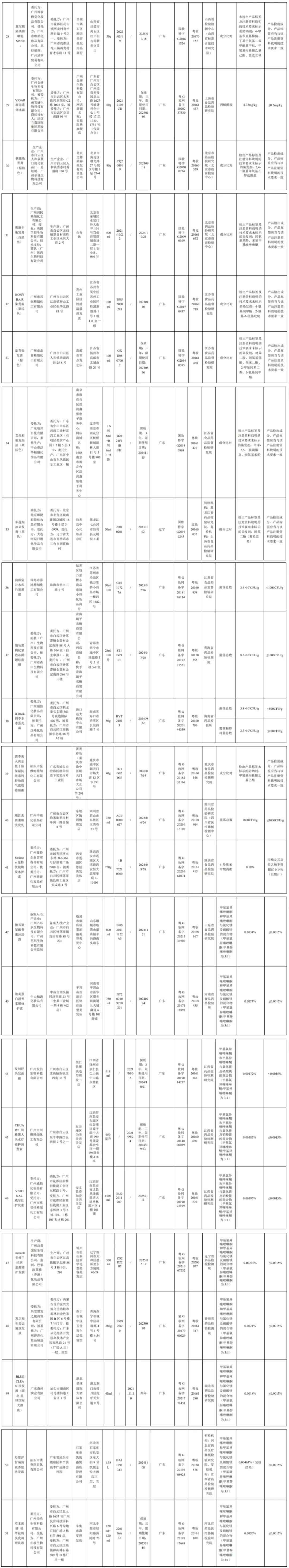 国家药监局13日发布的《关于51批次不符合规定化妆品的通告》(以下简称《通告》)显示,在2022年国家化妆品监督抽检工作中,经江苏省食品药品监督检验研究院等单位检验,产品标签标示为广州市申强实业有限公司生产的NNBIS染发膏(黑色12号)等51批次化妆品不符合规定。