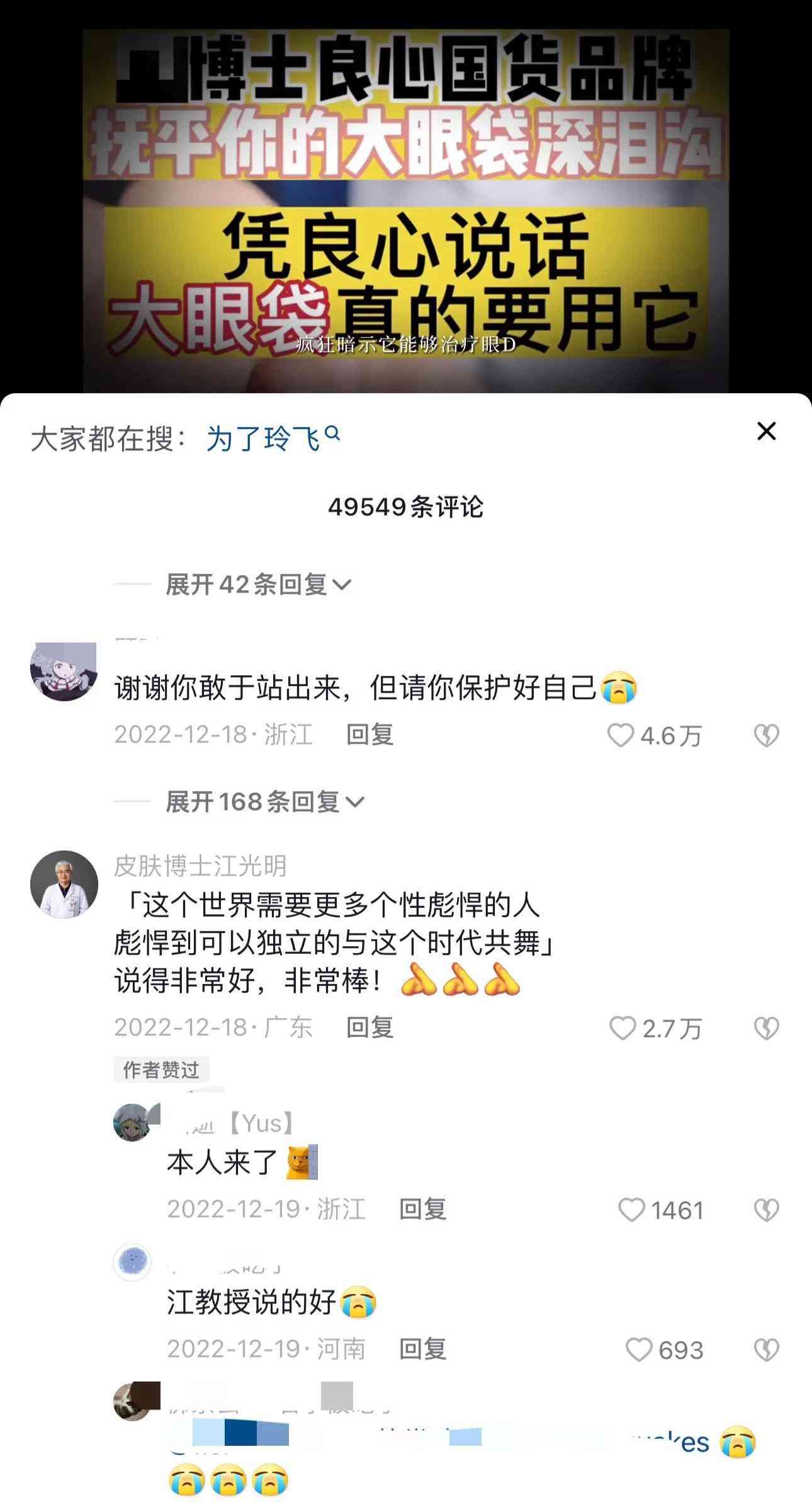这条视频发出之后,江博士本人出现在了评论区,并引用了博主的一句话表示对他的支持和鼓励:这个世界需要更多个性彪悍的人,彪悍到可以独立的与这个时代共舞!