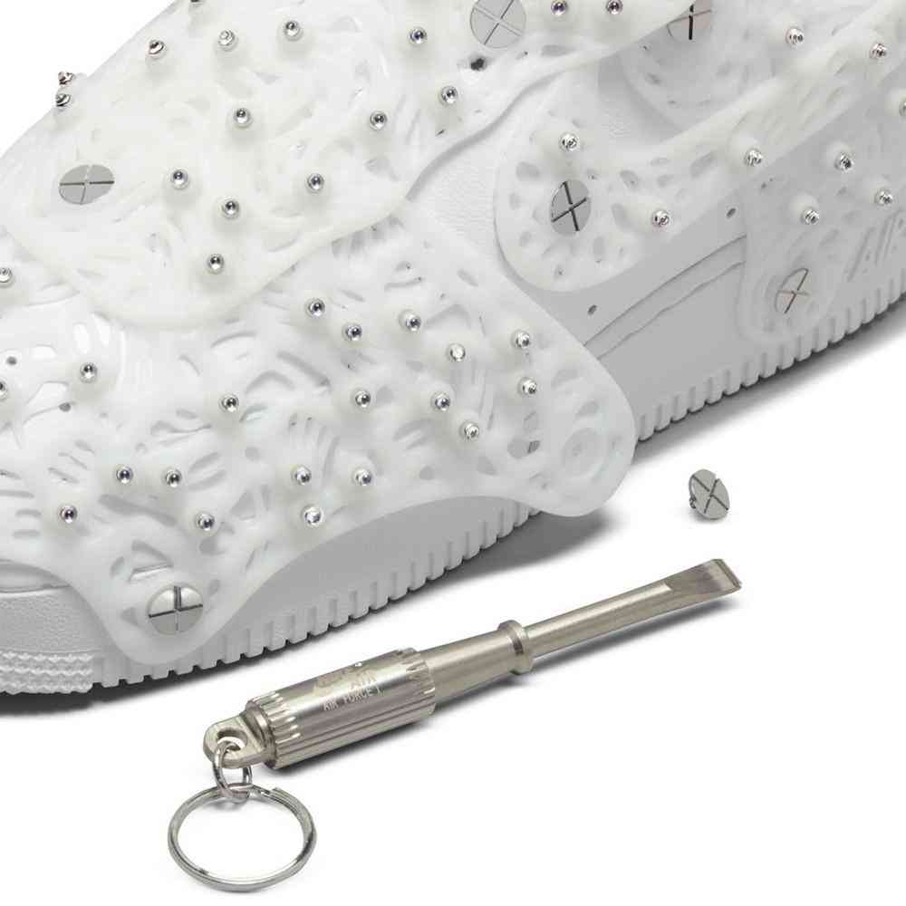 虽然外壳的设计确实过于超前,但随鞋附赠螺丝刀,可以把整个外壳拆卸,这样就能变回经典的纯色 Air Force 1 Low。