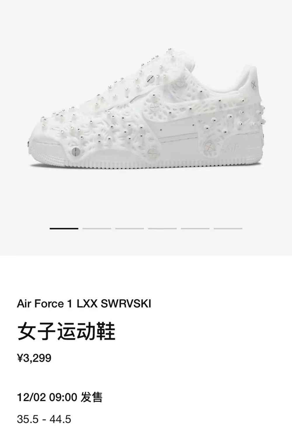 全新 Air Force 1 LXX SWRVSKI 黑、白配色均已在国区 SNKRS 上架,发售价格均为 ¥3299 元,预计 12 月 2 日上午 9:00 开始发售,喜欢的朋友不妨提前做好准备!