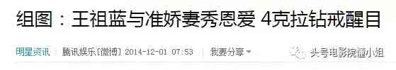 2014年11月,王祖蓝曾用4克拉钻戒向李亚男求婚。
