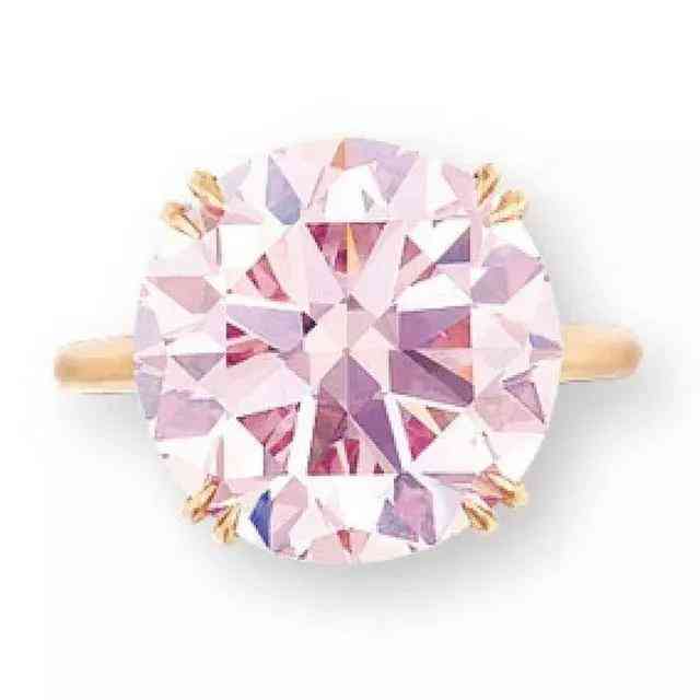 这颗夺目的粉红钻镶嵌在一枚女款戒指上,配以独特的椭圆形镶钻黄金托架,是2015年5月佳士得日内瓦瑰丽珠宝拍卖上的一大焦点