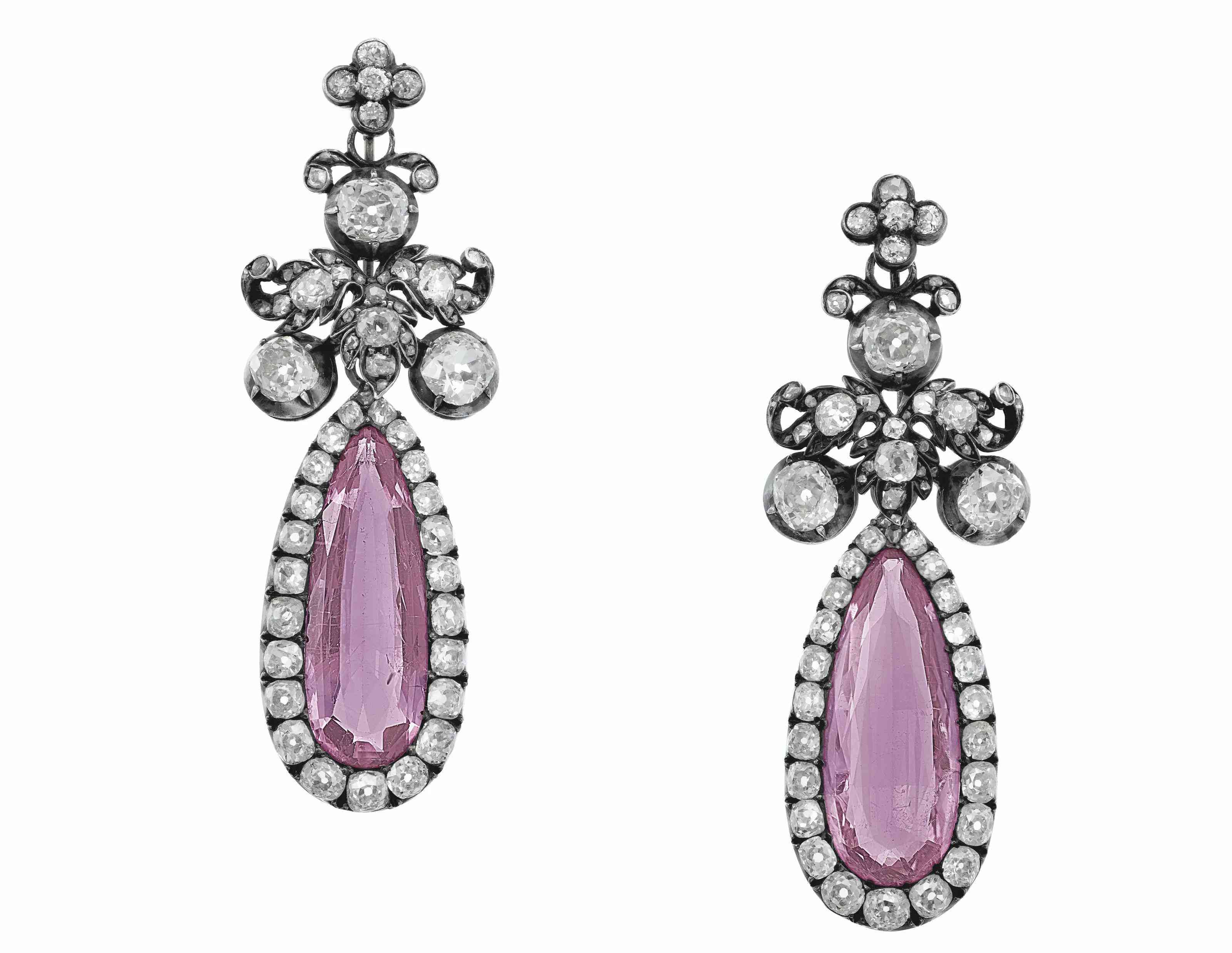 古董粉色黄玉和钻石耳环