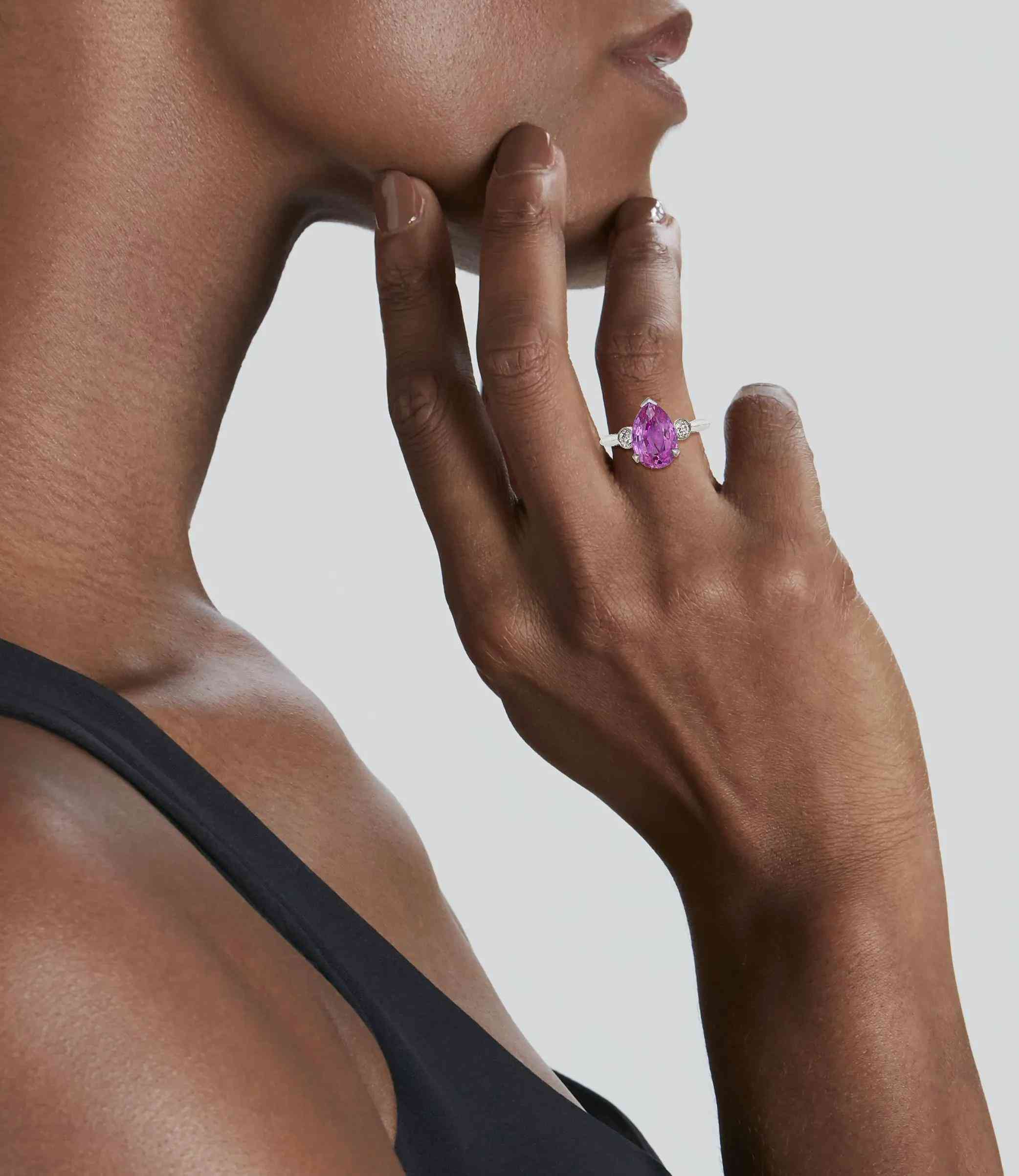 粉色梨形蓝宝石戒指
