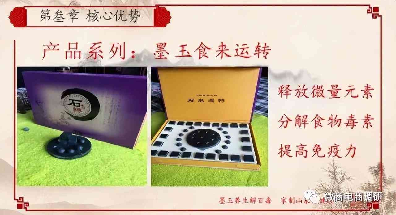 据宣传,墨玉保健锅、墨玉“食来运转”产品有保鲜、解毒、防腐、去污的功效,用于煮水可以改变水分子结构,对水进行净化、矿化、磁化、转化成小分子团水,达到人体需要的碱性水要求,自动调节饮水PH值,改善亚健康体质;用于炒菜可以有效去除农药残留,久煮不烂,久翠不衰,原汁原味,香嫩可口;用于炖肉可以有效分解肉类激素,汤美肉嫩,排毒美颜,返璞归真,去腥提鲜。