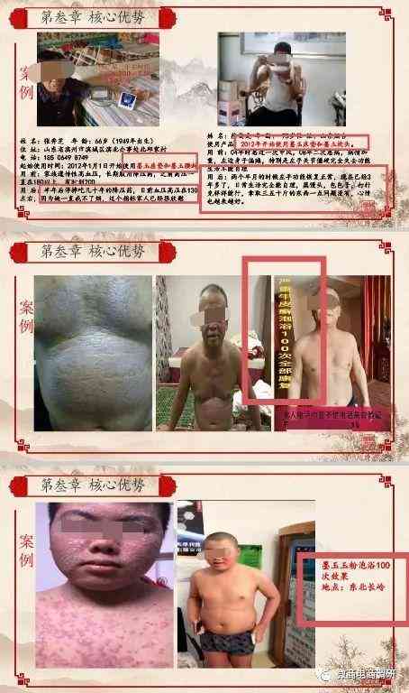 墨玉公主的宣传资料中,还附上了案例,66岁的高奶奶患有家族遗传性高血压,长期服用降压药,高压在180~200以上,使用墨玉坐垫和墨玉腰封半年后停掉了降压药,血压也稳定在130左右;75岁的徐爷爷患了中风,左边身子偏瘫,生活不能自理,使用墨玉枕头和墨玉床垫三个月后,左手功能恢复正常,三年后日常生活完全可以自理,还可以拿三五十斤的重物;有个孩子用墨玉玉粉泡浴100次,治好了身上和脸上的皮肤病;还有人泡浴100次治好了严重的牛皮癣。盛世玉宠的商城中,还直接宣传墨玉腰封对男性前列腺炎有很好的调理作用,对肾虚、性功能减退也有明显效果,对女性妇科疾病如小腹疼痛、痛经、月经不调、盆腔积液、宫颈类疾病都有明显效果。