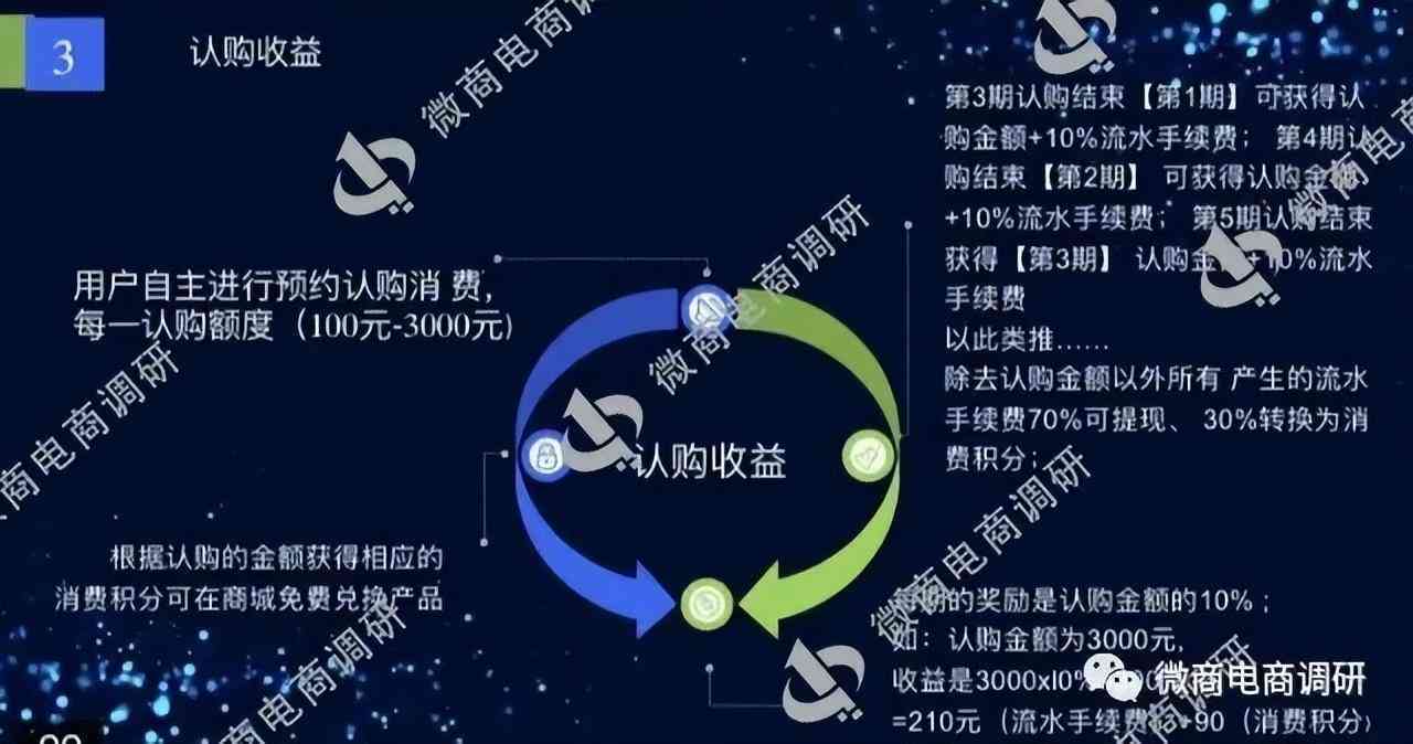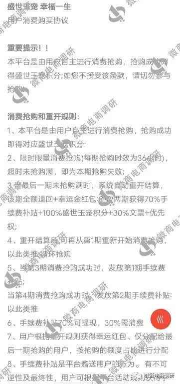 盛世玉宠看似只需要参与认购就可以获得收益,还能免费兑换产品,但其本质就是一个资金盘。以奖励引诱投资者们不断推广发展人员,用后加入者抢单认购的资金给付先加入者的认购奖励,随时都有崩盘的危险,一旦新加入者减少或没有新人加入,项目方就会以各种理由限制投资者提现,最后卷款跑路。微商电商调研也在此提醒大家,远离来路不明的投资项目,不要轻信他人话术,以免受骗。