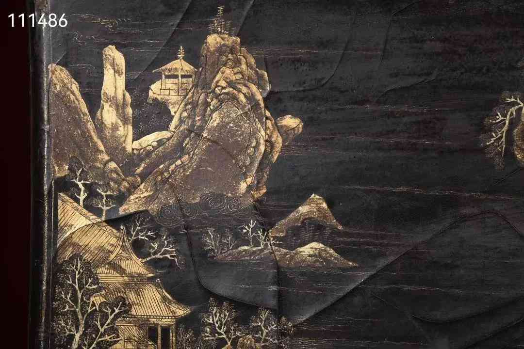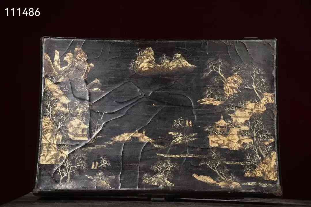 大尺寸老皮胎描真金漆器山水图收纳箱