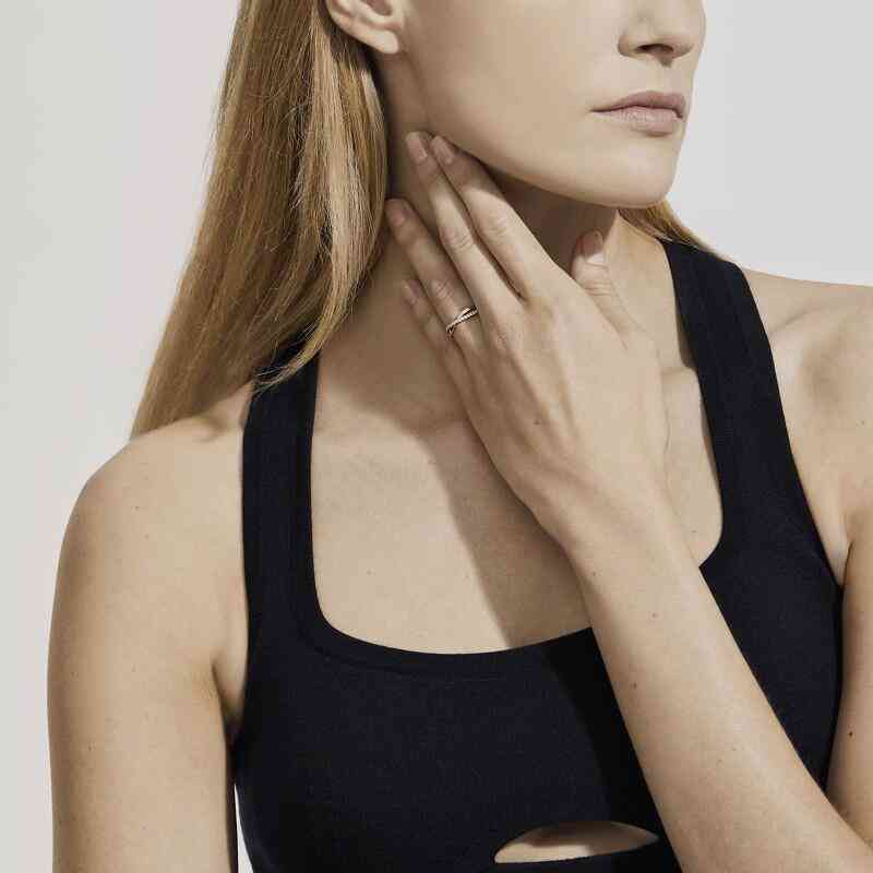 由象征 Tiffany & Co. 品牌的英文字母T重复堆栈组成圈环的Tiffany T True 系列戒指,以鲜明直角彰显摩登气息和活力,再仔细鉴赏,还能发现T字母其实是两两相依横放,也为这款入门款时髦戒指添加浪漫寓意。另外还有T1,用单一个字母T绕成圈环,将斜边重新塑型、倒角抛光、密镶钻石,更显质感与辨识性。