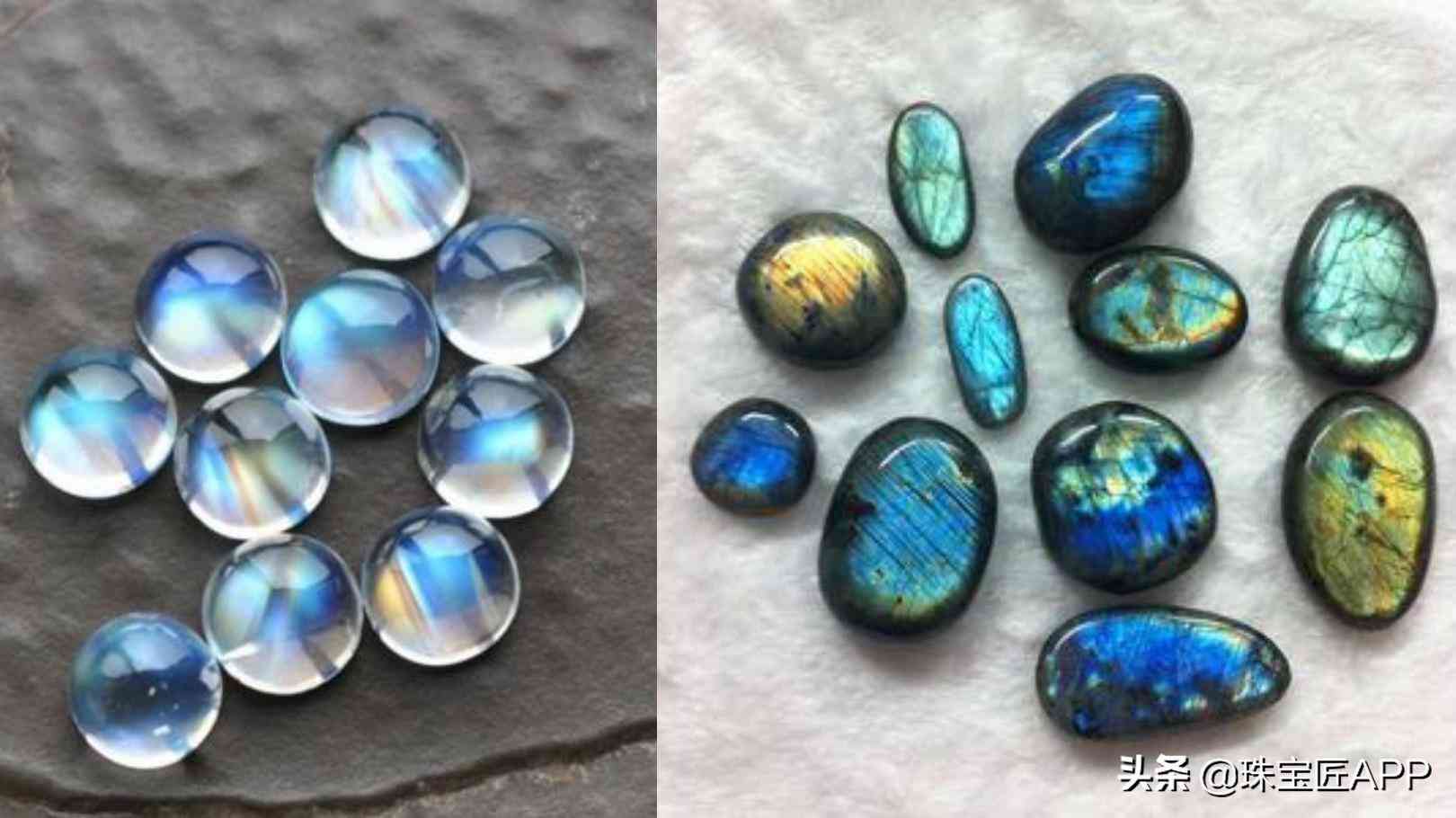 外观上,二者最大的差别是:月光石的体色是白色,拉长石的体色是灰色。