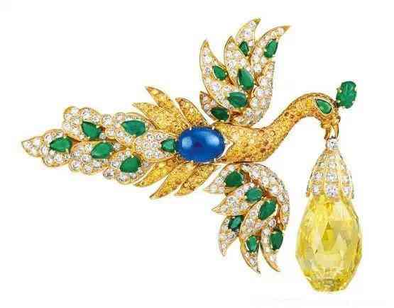 天堂鸟胸针, 1948年卡地亚巴黎特别订制,超大尺寸(20.20cm)这枚胸针成为战后最别具一格的高级珠宝作品。