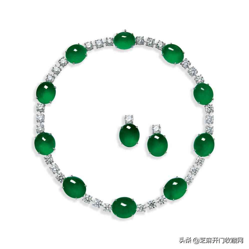 珍稀绝伦缅甸天然「帝王绿」翡翠蛋面配钻石项链及耳环套装,估价:咨询价,成交价: HKD 70,800,000