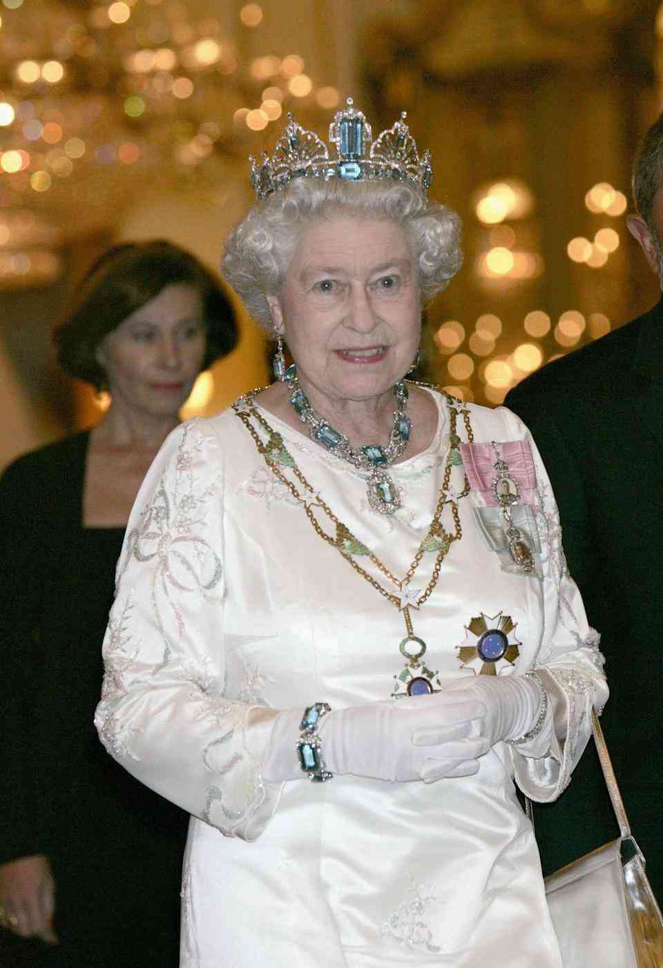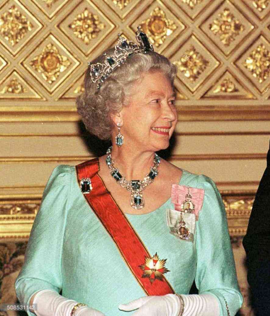 伊丽莎白女王就有一套价值不菲的海蓝宝石套装,是巴西送给她的礼物,包括王冠、项链、耳环和手链,她佩戴过很多次。