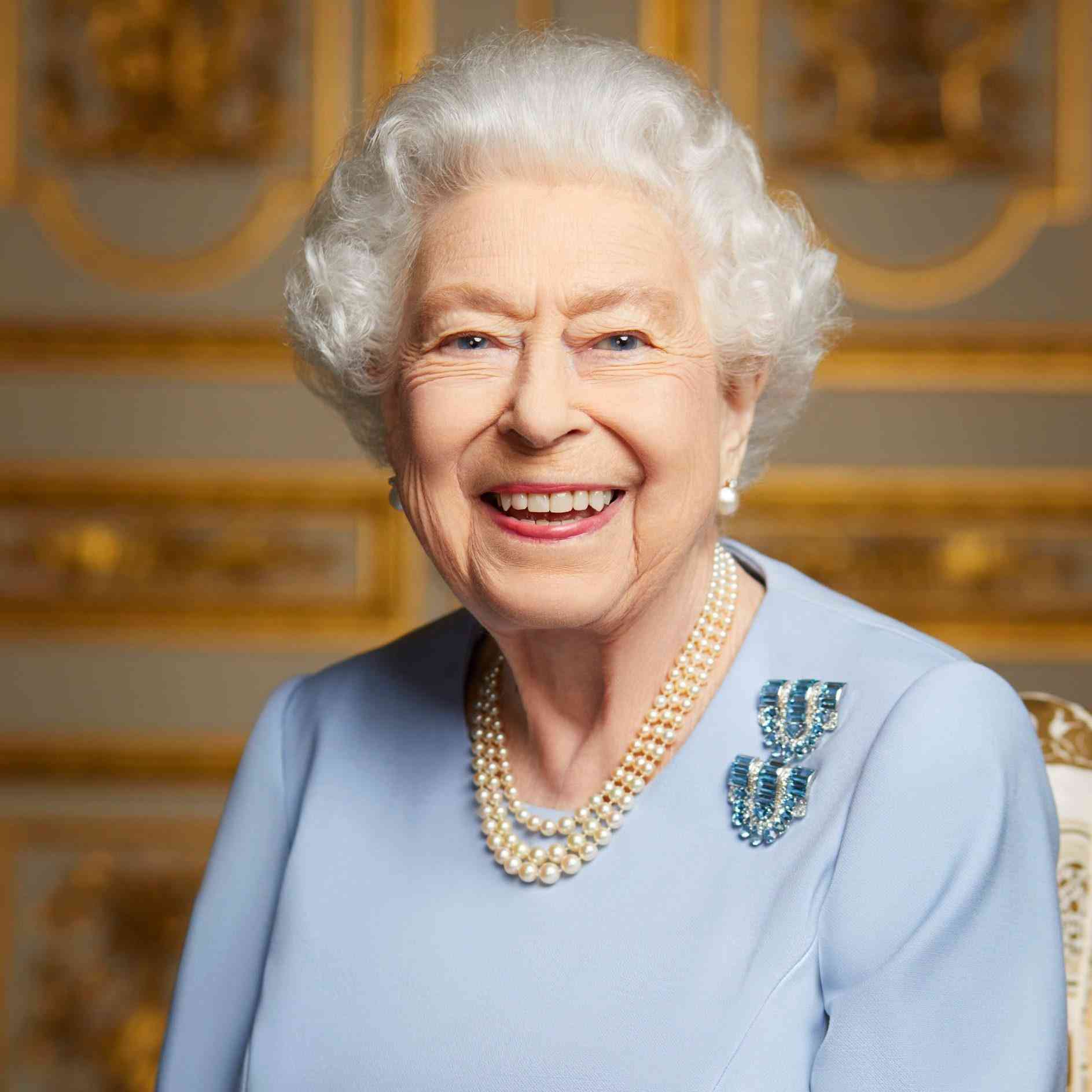 女王去世后,白金汉宫曾分享过一张女王生前拍摄的肖像照,照片中也是佩戴着一对海蓝宝石钻石胸针。