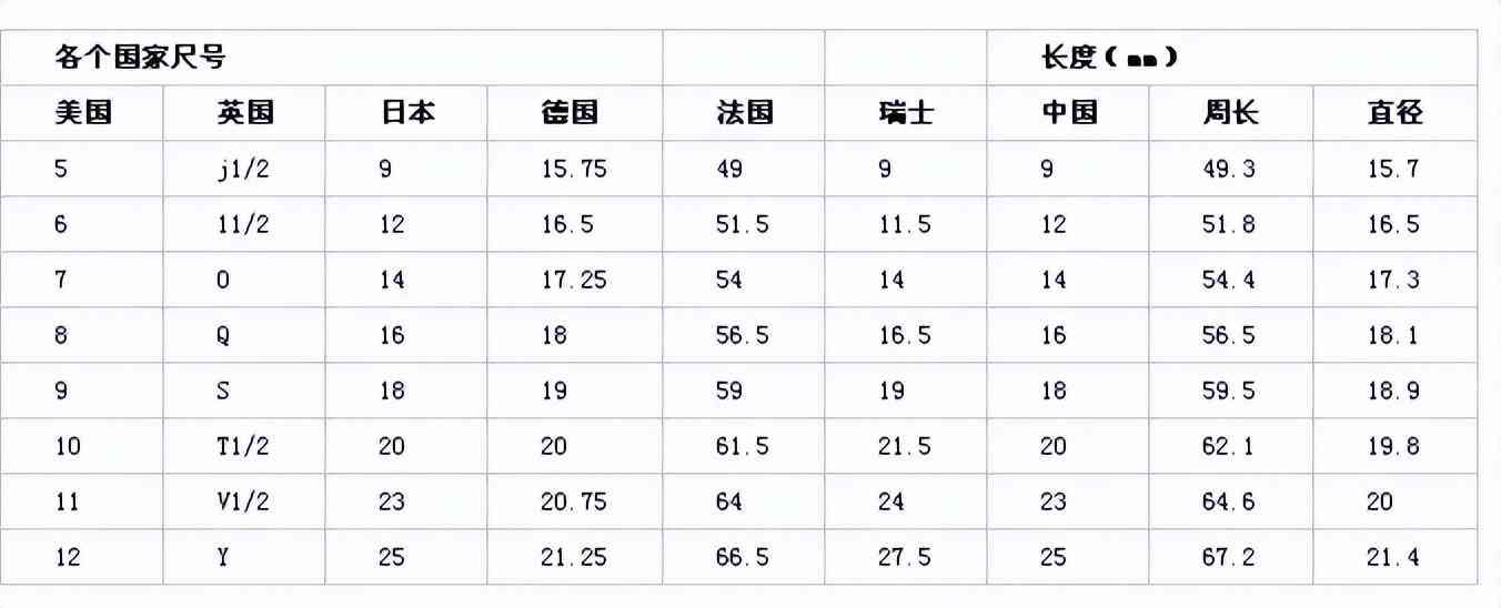 只要测量好自己的指围,对应表格就可以知道自己的尺码,比如指围是49.3毫米的话,美国的圈号是5,英国的圈号是j1/2,中国、日本、瑞士的圈号是9,德国的是15.75,法国的是49。