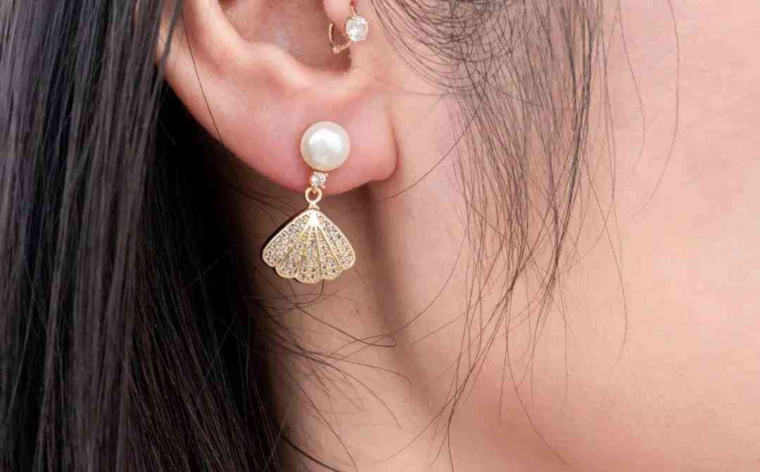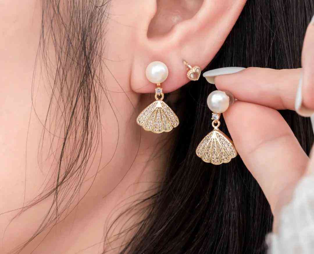 这款贝壳造型的耳饰,小巧精致,有一种精致干练的美。
