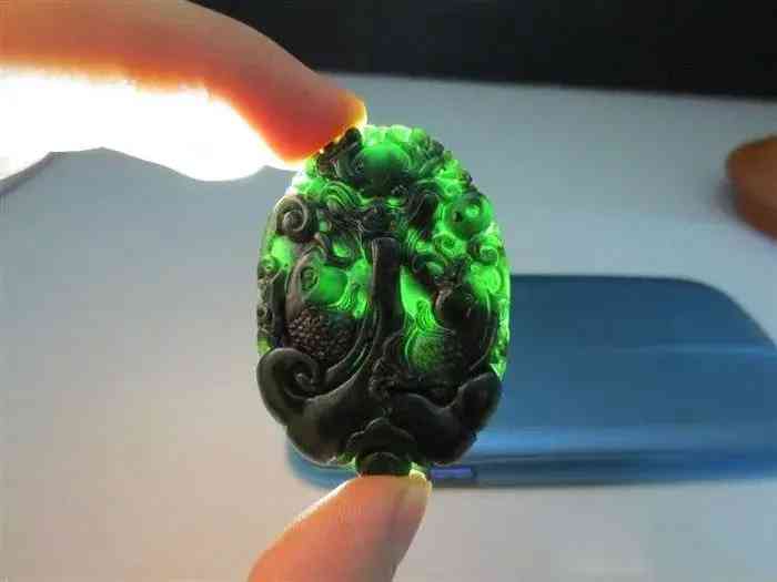 黑碧玉因内部含有特殊的化学元素,在透光时会呈现绿色底色,为了绿得好看,它在自然光下应该越黑越好,黑润油亮更好。
