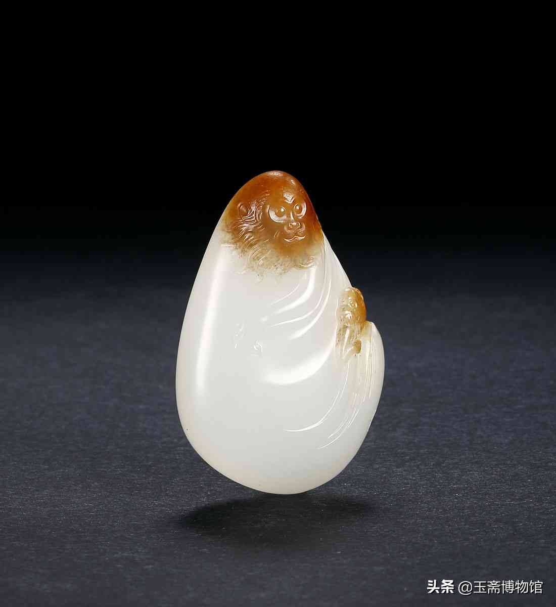 作品选用独颗羊脂玉雕琢而成,质若凝脂,润如羊脂。作者巧用俏色雕琢母子灵猴头部,小灵猴由仙石迸出,写意化表现身体。母猴慈祥小猴活泼可爱,充满好奇的神态,大有孙悟空横空出世,桀骜不驯之气势。