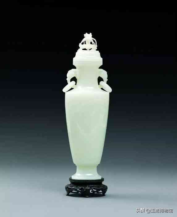 玉瓶用新疆和阗羊脂白玉制作,盖钮透雕龙纹,肩部饰象首衔环,造型优美典雅,带原装紫檀盒,盒盖上刻“大清乾隆御制,赐恭亲王”。