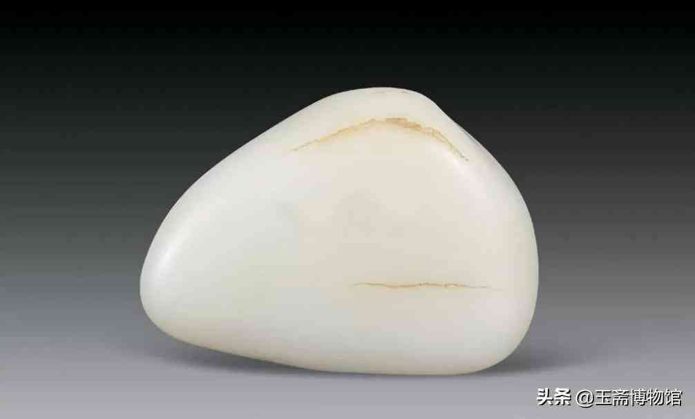 纯净柔白而无杂色,肉质罕见的细腻,肉眼几乎看不到玉石的毡状结构,子料,基本不见皮色,仅一侧略有小指甲大的一点,倒是为柔细的子料增添了几分俏皮。背面两道细纹,很浅,内有沁色,更显可爱。造型完整,无磕无伤,无论是质地、颜色、形状、油润程度,都堪称绝品,是正真的羊脂白玉子料。