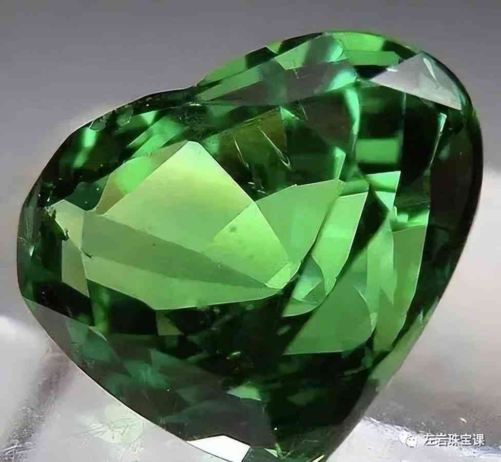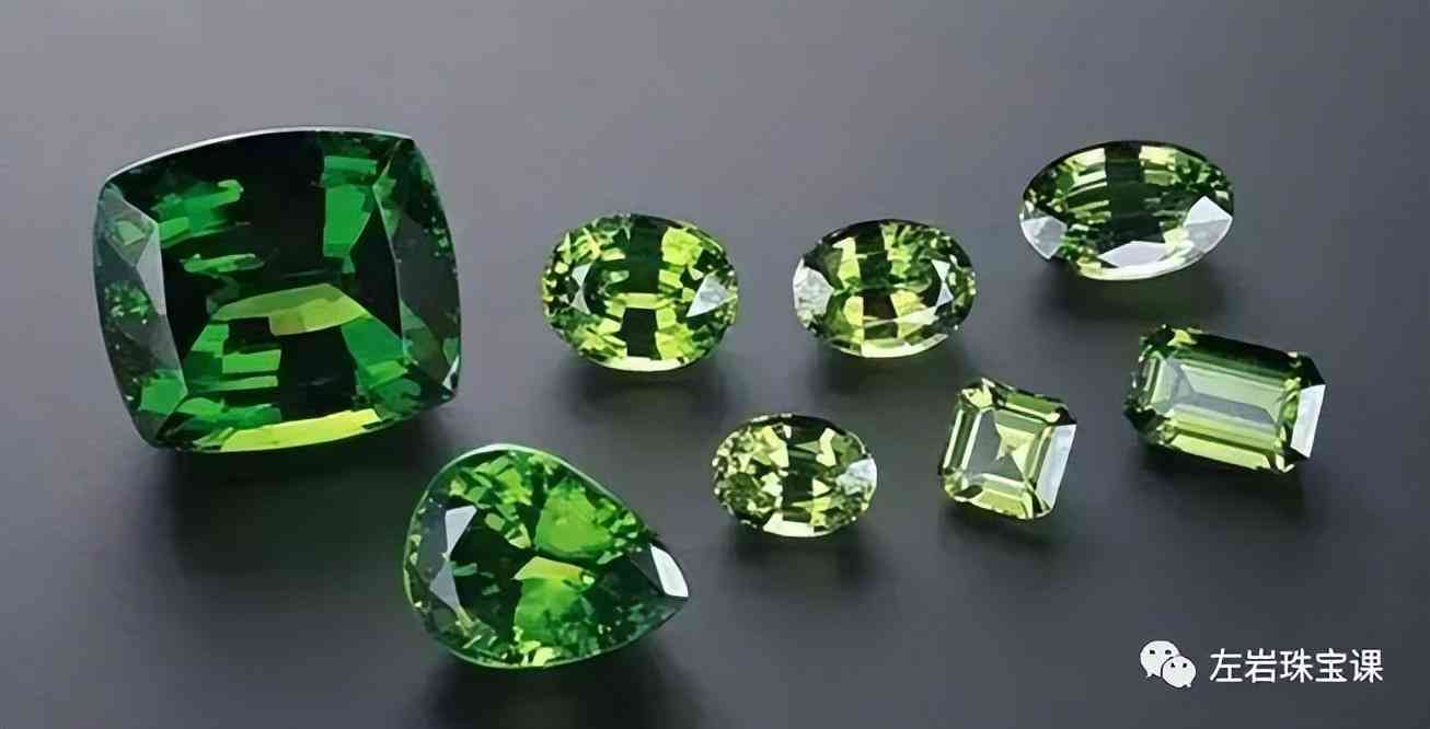 颜色:从浅绿色至深绿色,「黄色调」和「棕色调」会降低宝石的价值,「蓝色调」则提升宝石的价值。最高品质的颜色是接近于祖母绿的浓郁蓝绿色,其次是明亮绿色的宝石