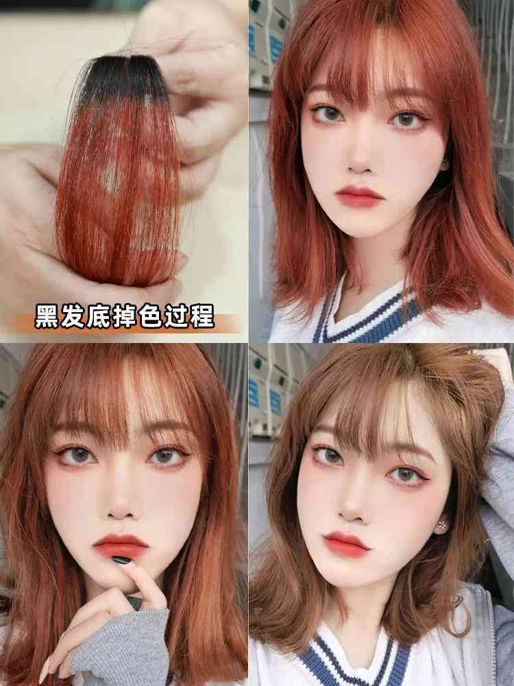 黑发底染出来是橘棕色,比较日常的发色,素颜也可以驾驭,黄黑皮也不踩雷!掉色的话也会比较慢一点